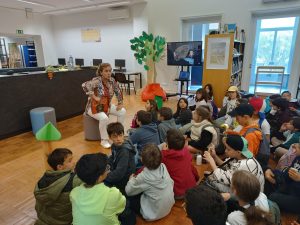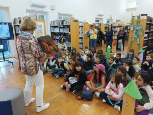 A professora Ilda Coelho , de forma expressiva, envolvente e interativa, cativou alunos e professores que passaram pela Biblioteca Dr. Carlos Percheiro para ouvir os seus contos.
