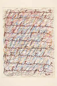 Ana Hatherly inicia em meados da década de 60 um percurso singular pela interioridade da escrita para concluir que esta «nunca foi senão representação: imagem». A artista empreende uma arqueologia da língua que a levará às origens dos signos e à herança da caligrafia oriental arcaica, que copia, disciplinadamente, até a mão se tornar «inteligente». O instrumento já não é a caneta, a mão, mas todo o corpo que se move e se inscreve na indizibilidade da escrita-imagem.