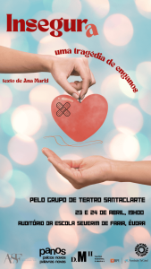 O grupo de teatro Santaclarte convida toda a comunidade educativa e público em geral a assistir à apresentação da peça de teatro Insegura...