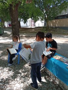 Organizada pelas Estagiárias do Curso de Apoio Psicossocial do 11º e 12º anos, a ação envolveu as turmas da EB e a comunidade e mostrou que vale sempre a pena investir na cultura. Os mais pequenos deram o exemplo de como ler nos faz aproximar uns dos outros e aprender a viver em paz. Estávamos muito bem! Com vagar, à sombra do arvoredo.