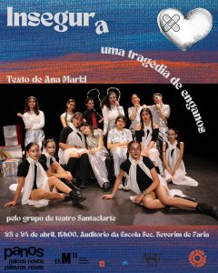 Nos dias 23 e 24 de abril , o Grupo de Teatro Santaclarte representou, de forma exemplar , a peça de teatro “Insegura- uma tragédia de enganos”, a partir da encenação do texto dramático de Ana Markl.